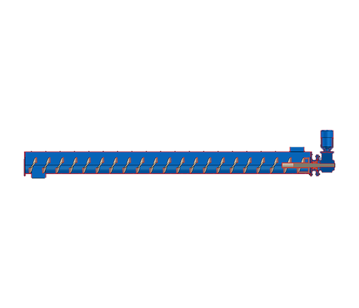 無軸螺旋輸送機的螺旋葉片采用不銹鋼材料通過專用模具的澆鑄而成,因而具有足夠的強度和剛度并且葉片表面光潔、又具有合適的旋轉(zhuǎn)速度,有效保證在輸送柵渣的過程中不會發(fā)生污物纏繞、阻塞現(xiàn)象,同時在輸送量較大的情況下螺旋葉片也不會變形。U型螺旋輸送槽內(nèi)耐磨襯里設(shè)置成半圓狀,其圓弧設(shè)置成與無軸螺旋體半徑相吻合以減少過量間隙來提高輸送效果;耐磨襯里采用耐磨性能高的尼龍材料制作,便于安裝及更換,使用壽命長。U型螺旋槽采用不銹鋼板卷制而成,除進料口敞開外,其余部份沿螺旋槽加平蓋封閉,整個傳輸過程在一個密封的槽中進行,降低噪聲,減少了異味的排出;在U型槽的底部設(shè)有排放口,并配套排水球閥。